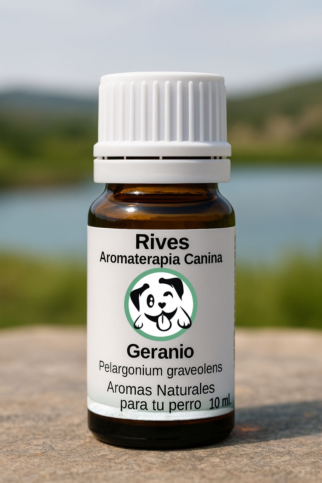 Geranio — Protección y vínculo afectivo. Aceite esencial reconfortante que brinda ternura y seguridad, ayudando a perros solitarios, heridos o desconfiados a recuperar la confianza y abrirse al vínculo afectivo.